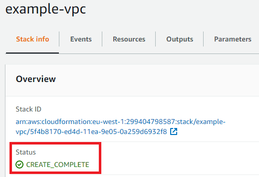 You'll now see a screen that shows you the progress of your VPC CloudFormation template creation. It will be in a CREATE_IN_PROGRESS state for a few minutes, then eventually will go to CREATE_COMPLETE. Awesomeness!