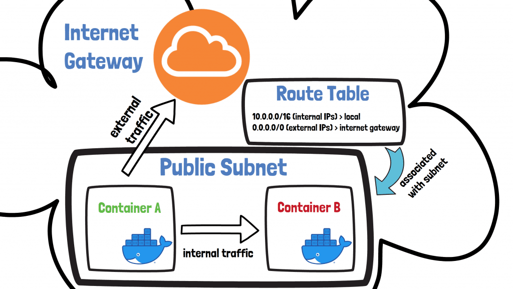 Introducing the AWS Internet Gateway. This provides access from a container to the internet, as long as the container meets two criteria:
