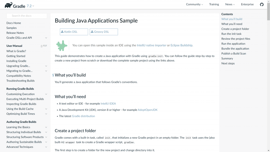 It contains everything you need to know to build Java applications with Gradle, with just enough information at each step of the tutorial.