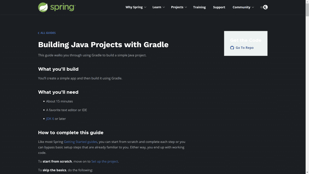 This tutorial has been put together by team Gradle themselves. Although it appears to be thin on content and strangely named, this is Gradle's Getting Started guide specifically for Java applications, so my expectations are already high.