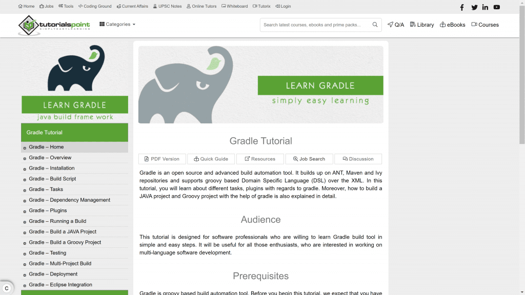 One slightly concerning aspect of this tutorial is that it contains whole sections which are identical to Gradle Tutorial by TutorialsPoint. Whether they have the same author, or there's something more sinister going on waits to be seen.