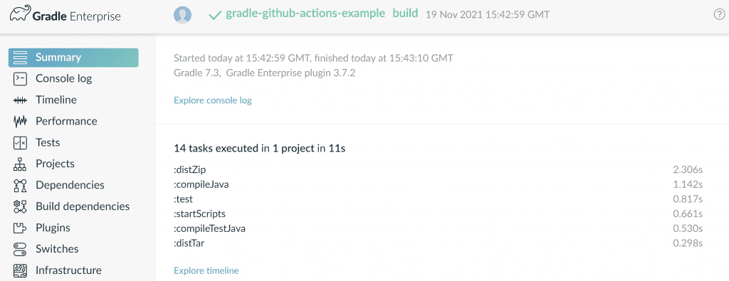 If you haven't tried build scan before, it gives you a whole load of detailed information you can use to fix slow or failing builds.