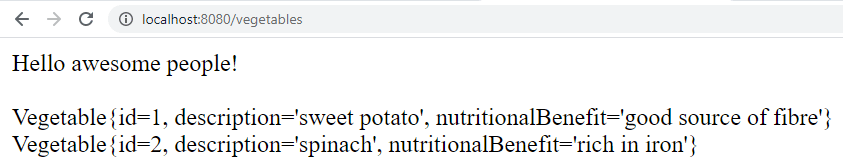 Looks good! ✅ How about http://localhost:8080/vegetables?