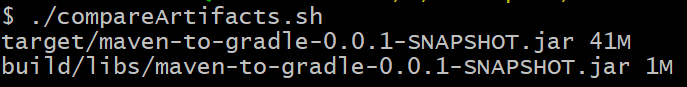 Add the following script to compareArtifacts.sh. It will compare the size of the built artifacts in Maven's target and Gradle's build directories.