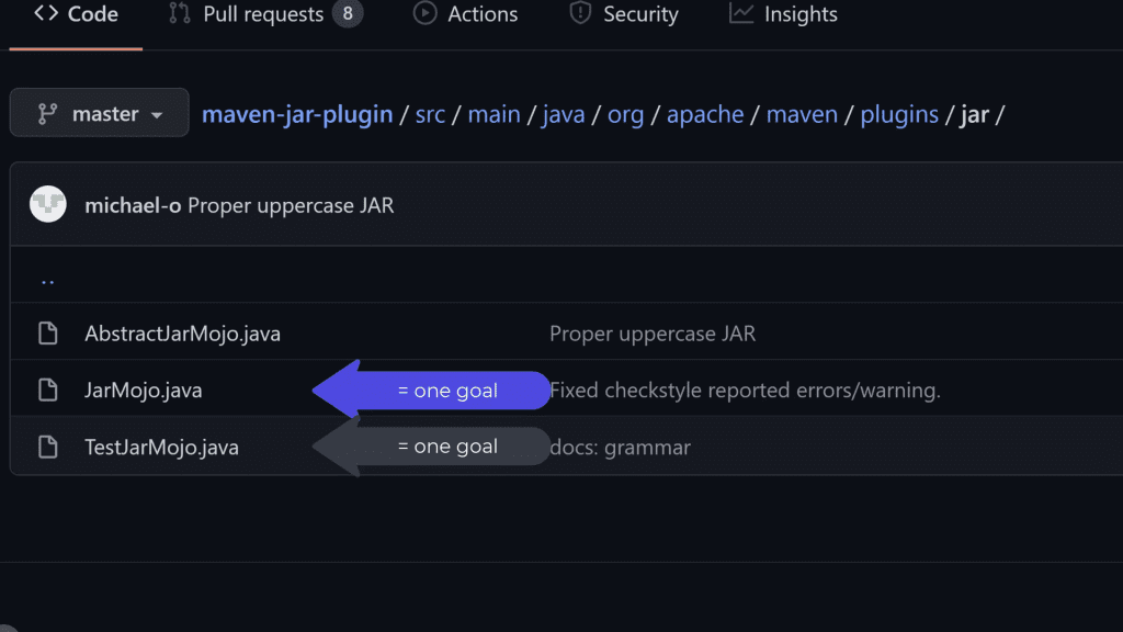 Anyway, each Mojo class has a single execute method and represents one goal.