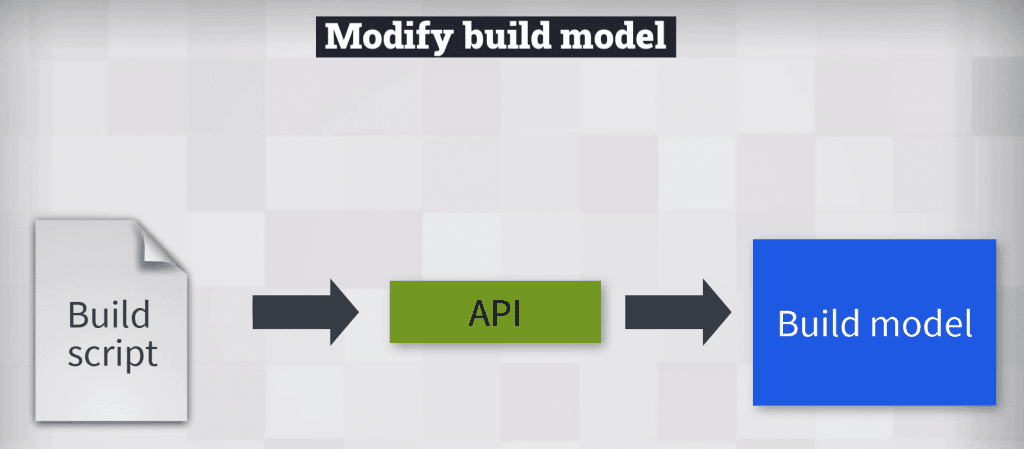One important difference with Gradle is it has a more dynamic model to represent your build. You can change this model on the fly using the Gradle APIs directly in your build script.