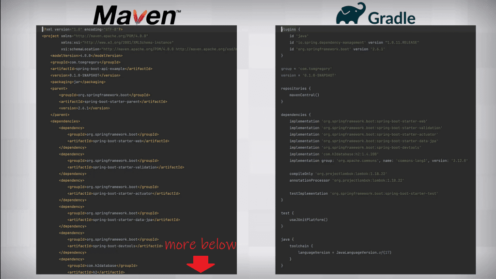 }The code based nature of build.gradle lets us add functionality more dynamically than Maven.