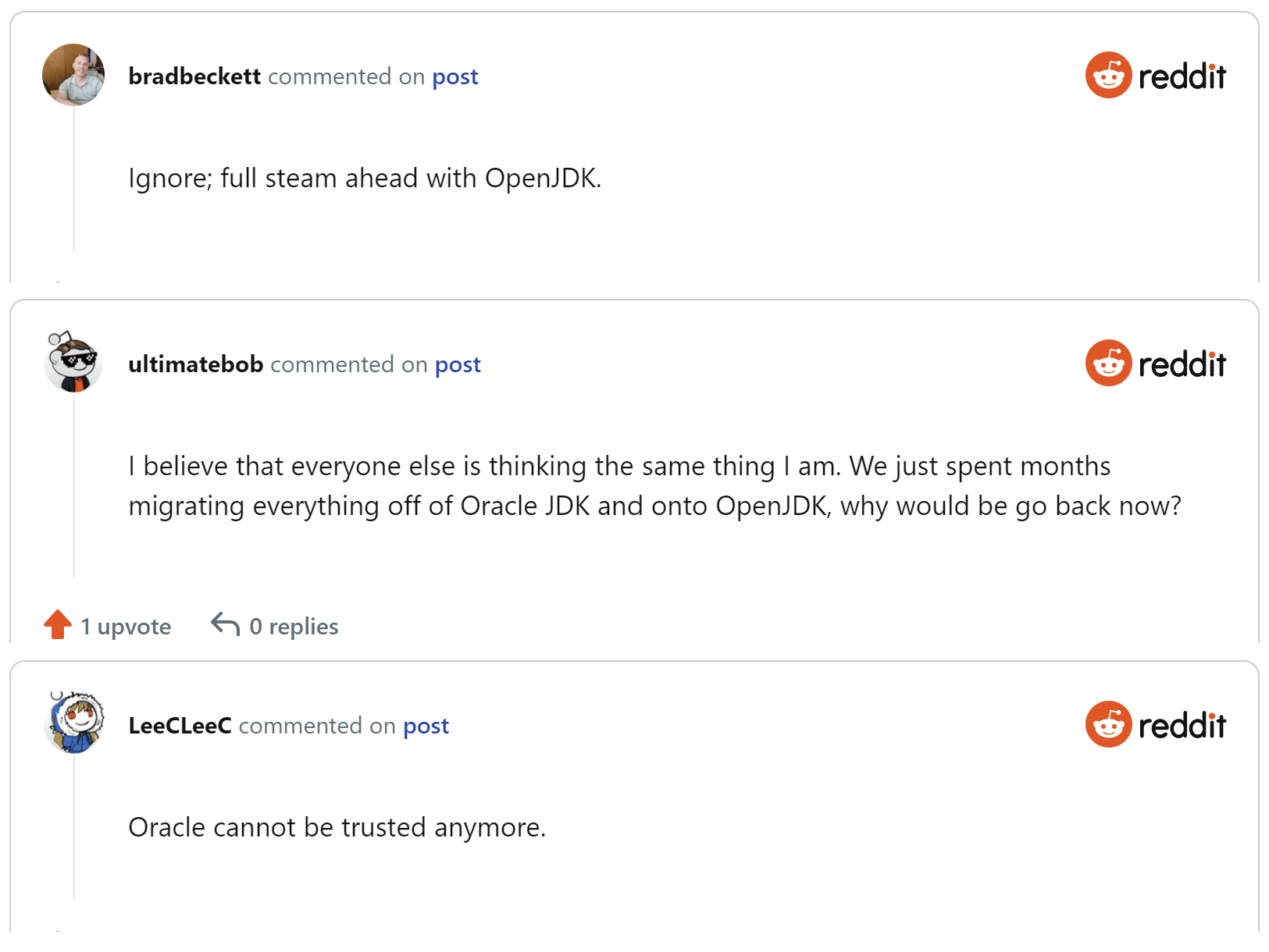 Well, not exactly. Actually, developers were fuming. After all the work they had put into moving away from Oracle JDK, they weren't about to jump back any time soon.